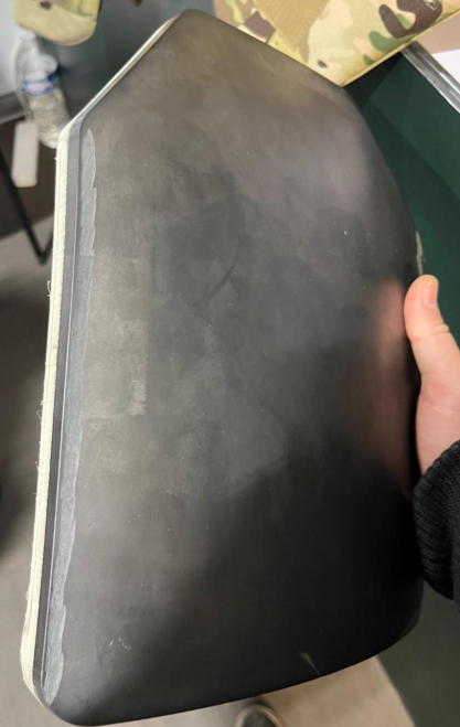 🔹 Face avant : céramique monolithique en Carbure de Silicium (SiC), sans écailles, pour une résistance optimale face aux projectiles de haute puissance.
